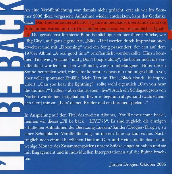 | Titre | I'll Be Back - Live '75 |