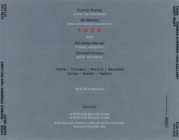 | Artiste | Thomas Strønen | Iain Ballamy | Food |