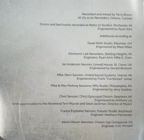 Cello Jim Anderson (14) | Copyist Kristina Freed | Flute Ian Anderson | Lead Vocals Matthew Parmenter | Other [Spoken word] France Espitalier | Rhythm Section [Programming], Keyboards Matt Cross (2) | Shaker Mark Mikel | Strings [Arranged by] Mark Mikel | Viola Florin Simioanca | Violin Cecilia Johnson, Dana Mader, Tom Sieberg