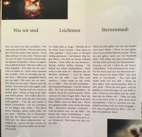 Acoustic Guitar Dirk Häfner | Acoustic Guitar [Strumming] Peter Keller | Bass Stephan Pfaff | Drums Reiner Hubert | Electric Guitar Marcus Schneider (2) | Electric Guitar [Additional] Daniel Hoffknecht | Electric Piano [CP 70], Electric Piano [Wurlitzer] Fabian Sennholz | Grand Piano Daniel Hassbecker | Viola Muriel Razavi | Violin [1st] Lisa Marie Vogel | Violin [2nd] Johanna Wundling | Violoncello Luisa Marie Babarro Fernández