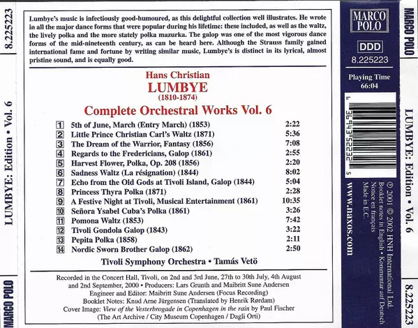 | Titre | Hans Christian Lumbye Complete Orchestral Works Volume 6 |