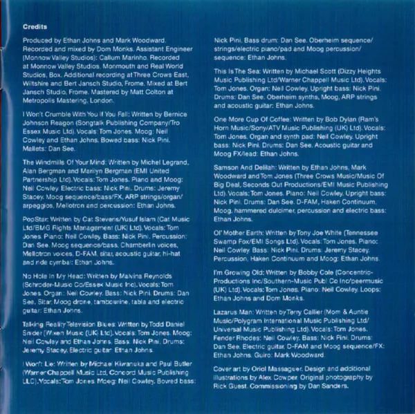 Double Bass [Upright Bass] Nick Pini | Drums Dan See | Piano Neil Cowley | Synthesizer [D-FAM], Electronics [Haken Continuum], Synthesizer [Moog], Dulcimer [Hammered Dulcimer], Percussion, Electric Bass Ethan Johns | Vocals Tom Jones | Written-By Ethan Johns, Mark Woodward, Tom Jones