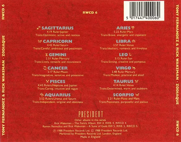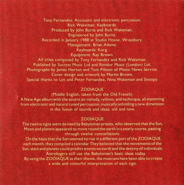 | Artiste | Rick Wakeman | Tony Fernandez |