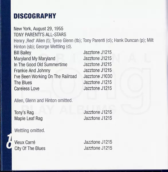 | Artiste | Tony Parenti's All-Stars |