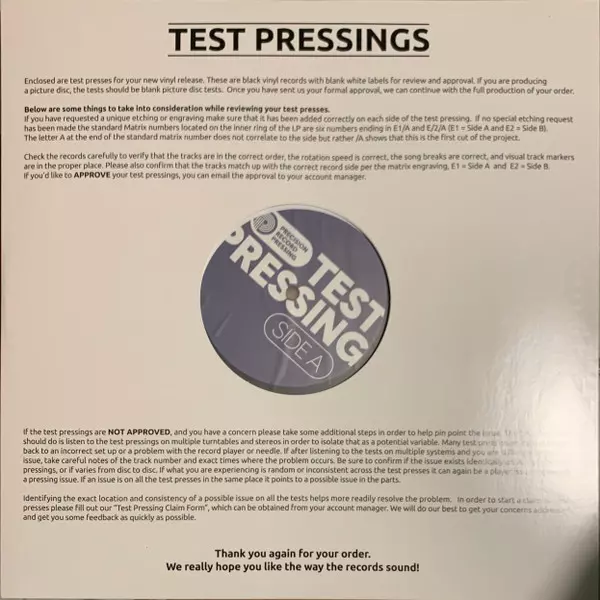 | Plus d'informations sur les disques vinyles | Limited Test Pressing Black Vinyl |