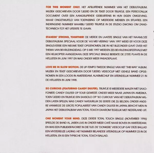 | Titre | The Best Of Total Touch & Trijntje Oosterhuis |