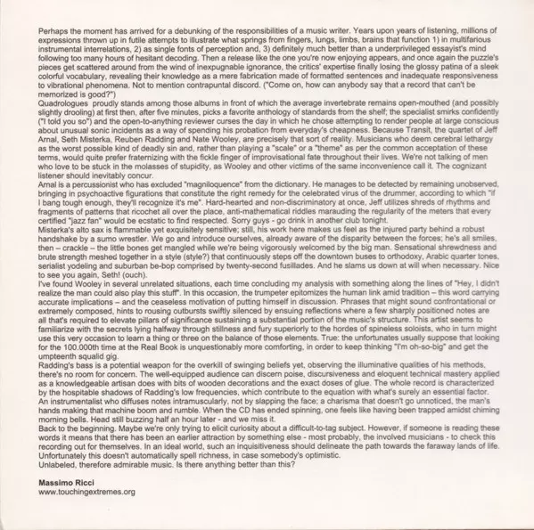 | Artiste | Nate Wooley | Reuben Radding | Transit | Jeff Arnal | Seth Misterka |