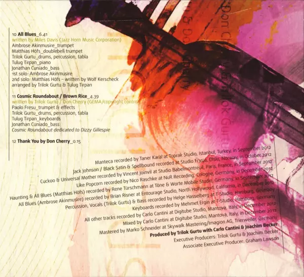 Arranged By Trilok Gurtu, Wolf Kerschek | Bass Jonathan Cuniado | Drums, Percussion, Tabla, Keyboards [Additional Keyboards] Trilok Gurtu | Keyboards Tuluğ Tırpan | Trumpet, Effects Paolo Fresu | Written-By Trilok Gurtu