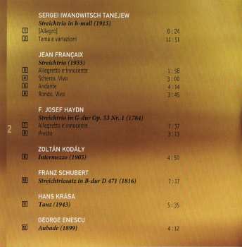 | Artiste | Joseph Haydn | Franz Schubert | George Enescu | Zoltán Kodály | Jean Françaix | Sergey Ivanovich Taneyev | Hans Krása | Trio Goldberg |
