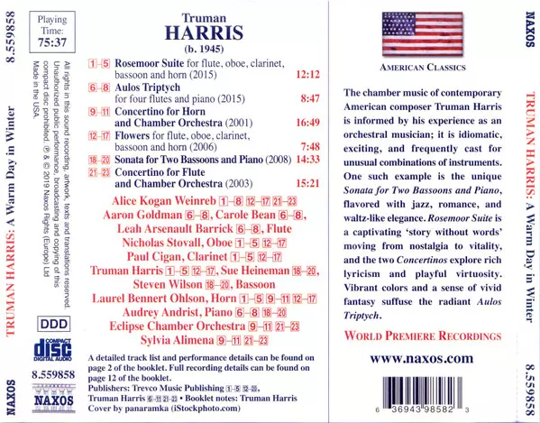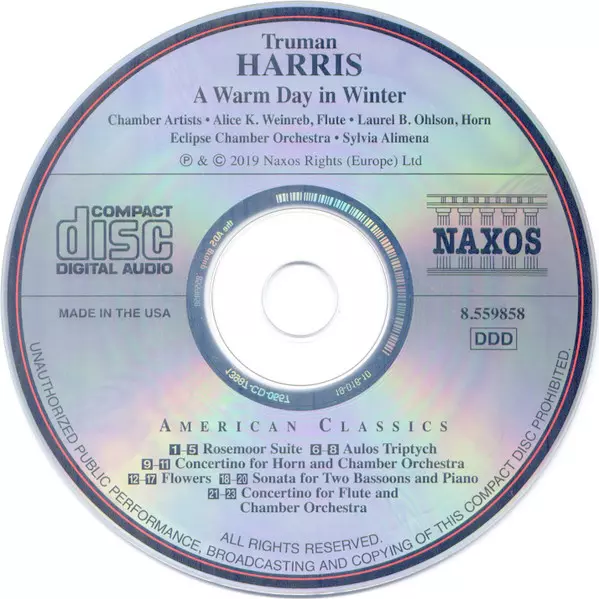| Artiste | Sylvia Alimena | Eclipse Chamber Orchestra | Truman Harris | Alice Kogan Weinreb | Laurel Bennert Ohlson |