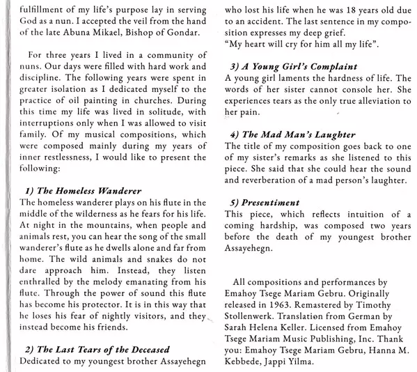| Artiste | Emahoy Tsegue Maryam Guebrou |