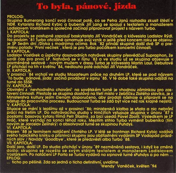 | Titre | To Byla, Pánové, Jízda (The Best Of Turbo) |