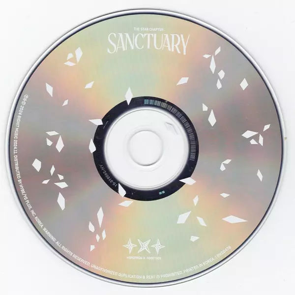 TXT: The Star Chapter: Sanctuary La version sur CD en Norme édition. Cette édition particulière a été publiée en Corée du Sud dans la maison d'édition HYBE Le 4 novembre 2024. Album couvre tous les genres Pop et K-pop. Savior Ver. Random Version.