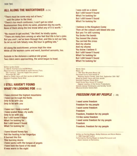 | B2 | U2: I Still Haven't Found What I'm Looking For (Live) | 5:53 min | |