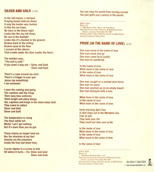 | B4 | U2: Silver And Gold (Live) | 5:50 min | |