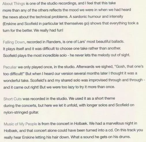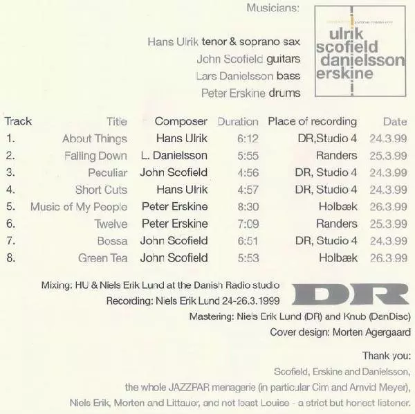 | Artiste | John Scofield | Lars Danielsson | Peter Erskine | Hans Ulrik |