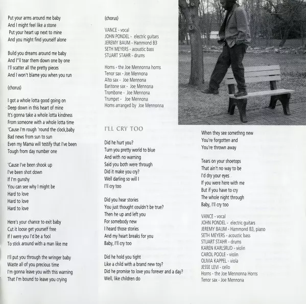 Acoustic Bass Seth Meyers (2) | Drums Stuart Stahr | Electric Guitar [Electric Guitars] John Pondel | Organ [Hammond B3], Piano Jeremy Baum | Vocals [Vocal], Acoustic Guitar Vance Gilbert
