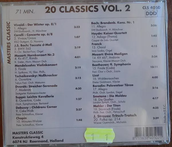 | Titre | 20 Classics - Digitalaufnahmen Großer Klassischer Musik - Vol. 2 |