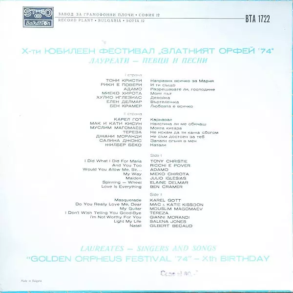 | B3 | Муслим Магомаев: Моята Китара (My Guitar) | ||