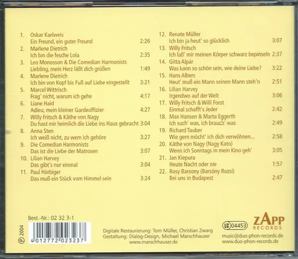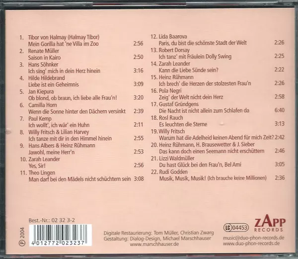 | 1-7 | Willy Fritsch, Käthe von Nagy: Du Hast Mir Heimlich Die Liebe Ins Haus Gebracht | 3:04 min | |
