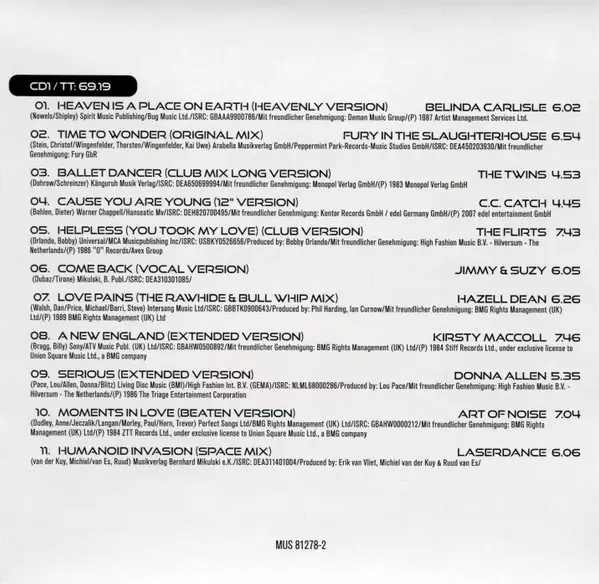 | 1-1 | Belinda Carlisle: Heaven Is A Place On Earth (Heavenly Version) | 6:02 min | |