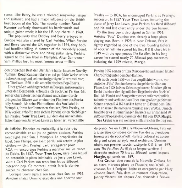 | Music By, Lyrics By Carl Perkins | Piano [Uncredited] Jerry Lee Lewis | |||