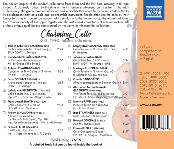 This album is a compilation of classic cello pieces, all of which are very charming. They are all pieces that I am familiar with, but have never heard them played like this. The cello is the star in each piece and the arrangements are beautiful.