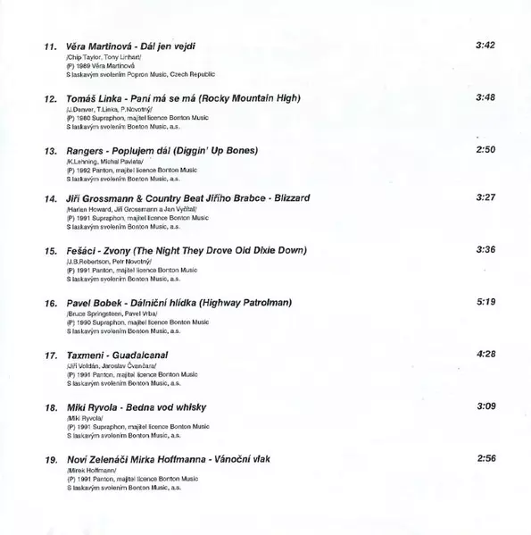 | 12 | Tomáš Linka: Paní Má Se Má (Rocky Mountain High) | 3:48 min | |