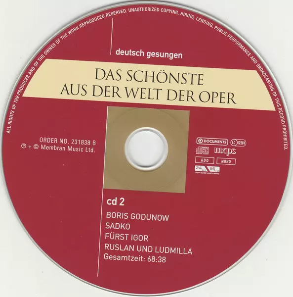 | Titre | Das Schönste Aus Der Welt Der Oper (Boris Godunow / Eugen Onegin / Pique Dame / Rusalka / Fürst Igor / Die Verkaufte Braut / U. A.) DIGI |