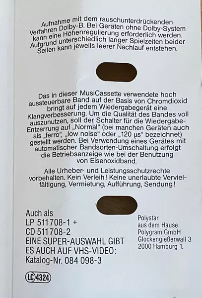 | Plus d'informations sur les disques vinyles | 1991 Cassette Polystar (Stereo) |