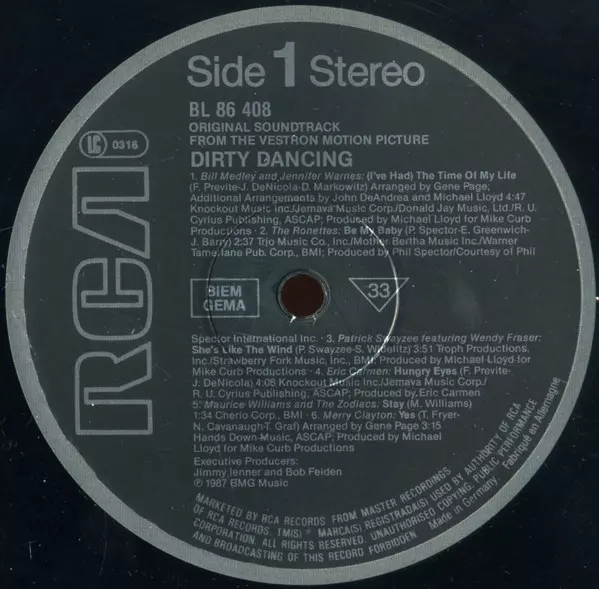 | Titre | Dirty Dancing (Original Soundtrack From The Vestron Motion Picture) |