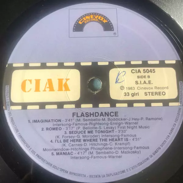 | Plus d'informations sur les disques vinyles | 1983 Cinevox Italy pressing |