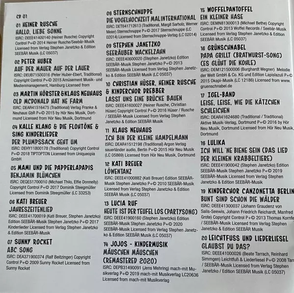| 1-4 | Sing Kinderlieder, Kalle Klang, Die Flohtöne: Der Plumpssack Geht Um | ||