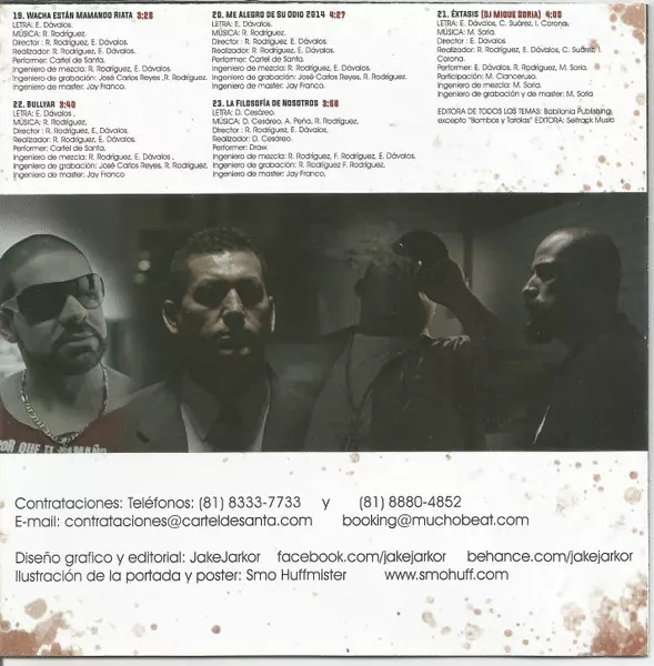 | Directed By Eduardo Dávalos, Román Rodríguez (3) | Lyrics By Eduardo Dávalos | Mastered By Jay Franco | Mixed By Eduardo Dávalos, Román Rodríguez (3) | Music By Román Rodríguez (3) | Performer Cartel De Santa | Realization Eduardo Dávalos, Román Rodríguez (3) | Recorded By José Carlos Reyes, Román Rodríguez (3) | |||