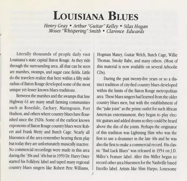 Bass Clarence Prophet | Drums Sam Hogan | Guitar Clarence Edwards | Harmonica Whispering Smith | Vocals, Piano, Written-By Henry Gray | |||