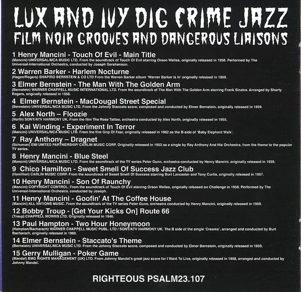 | Titre | Lux And Ivy Dig Crime Jazz (Film Noir Grooves And Dangerous Liaisons) |