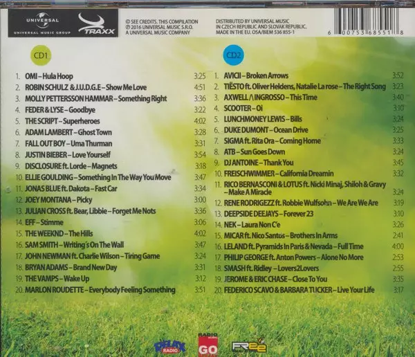 Č.CompositionTimeCD1OMI - Hula HoopROBIN SCHULZ & J.U.D.G.E - Show Me LoveMOLLY PETTERSSON HAMMAR - Something RightFEDER & LYSE - GoodbyeTHE SCRIPT - SuperheroesADAM LAMBERT - Ghost TownFALL OUT BOY - Uma ThurmanJUSTIN BIEBER - Love YourselfDISCLOSURE ft. Lorde - MagnetsELLIE GOULDING - Something In The Way You MoveJONAS BLUE ft. Dakota - Fast C...
