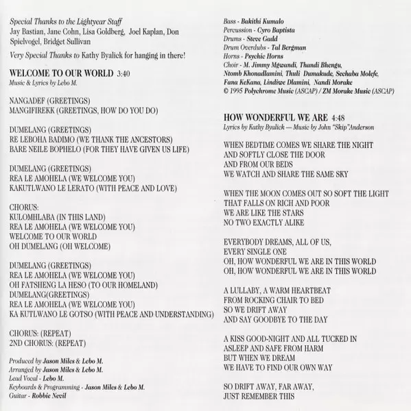 | 1 | Lebo M: Welcome To Our World | 3:40 min | |