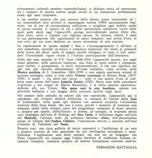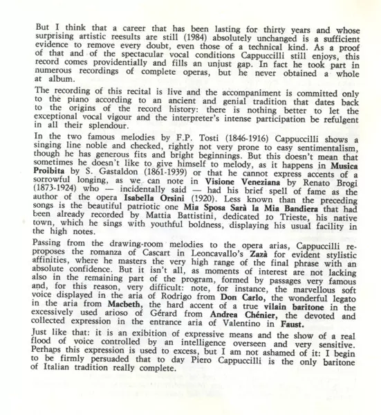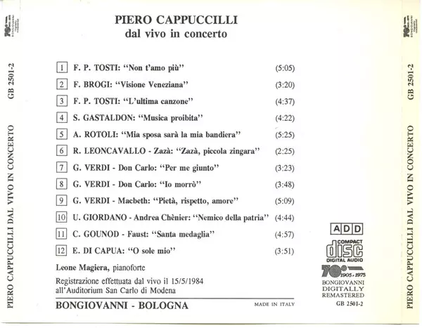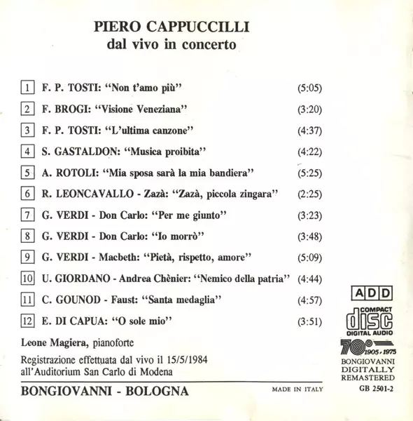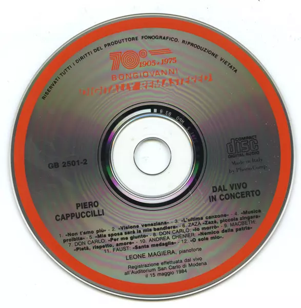 | Titre | Piero Cappuccilli In Concerto - Live |