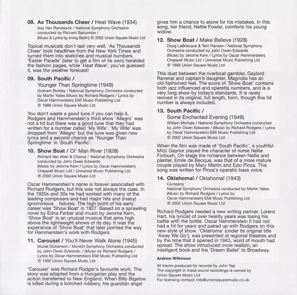 Conductor Martin Yates (2) | Lyrics By Oscar Hammerstein II | Music By Richard Rodgers | Solo Vocal Graham Bickley, Shona Lindsay