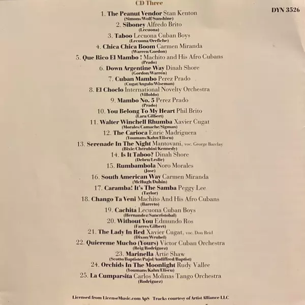 | 3-22 | Victor Cuban Orchestra: Quiéreme Mucho (Yours) | ||