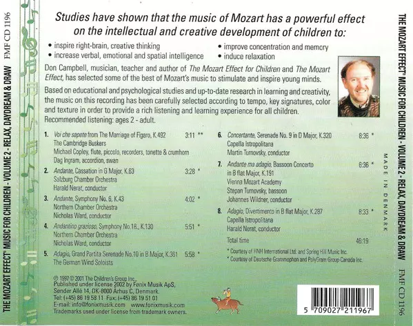 | Titre | The Mozart Effect Music For Children - Volume 2 - Relax, Daydream & Draw |