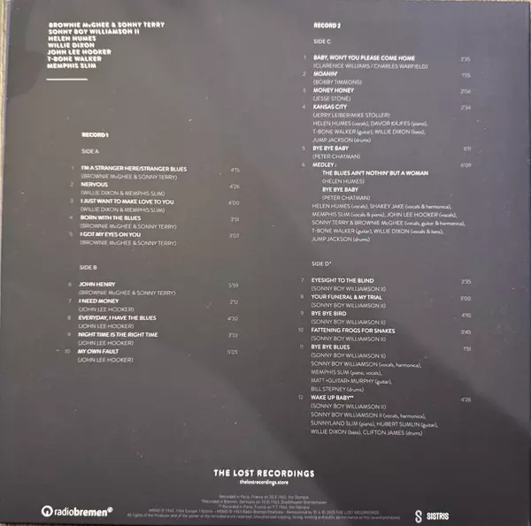 Acoustic Guitar Matt Murphy | Drums Billie Stepney | Piano, Vocals Memphis Slim | Vocals, Harmonica Sonny Boy Williamson (2)