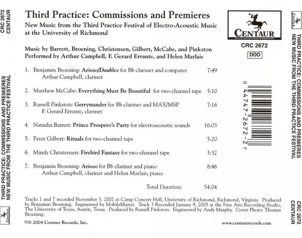 | Titre | Third Practice: Commissions And Premieres (New Music From The Third Practice Festival Of Electro-Acoustic Music At The University Of Richmond) |