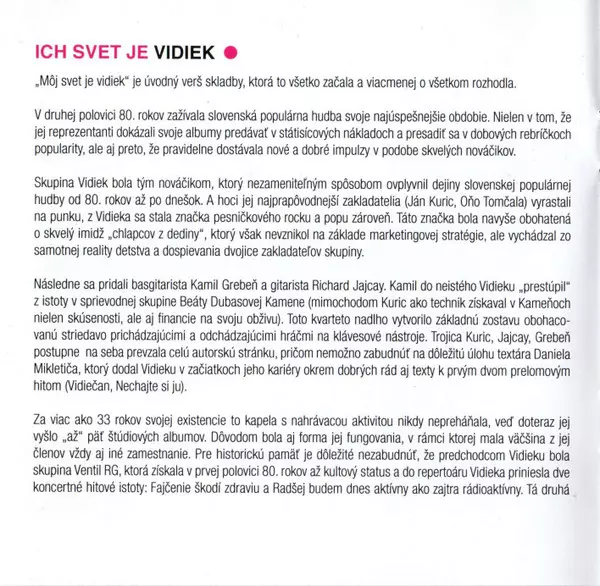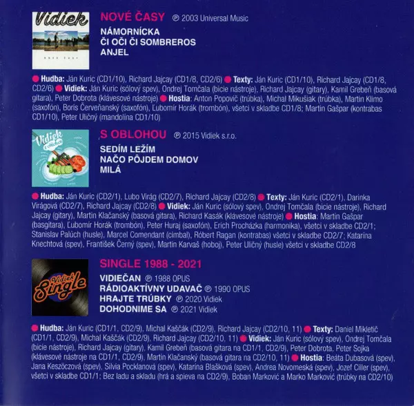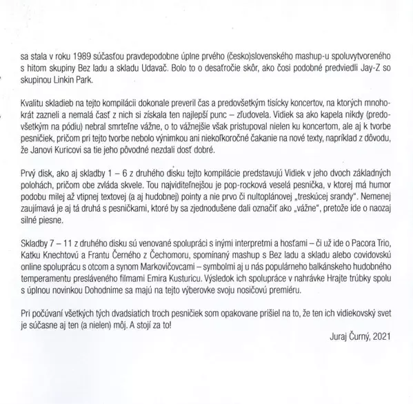 Vidiek: Najvidiekovatejší La version sur 2CD en Remasterisé édition. Cette édition particulière a été publiée en République tchèque et Slovaquie dans la maison d'édition Opus Le 15 octobre 2021. Album couvre tous les genres Rock, Pop, Pop Rock et Classiques tchécoslovaques.