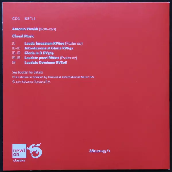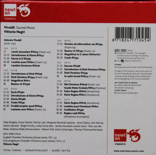 | Artiste | Antonio Vivaldi | Elly Ameling | Julia Hamari | Agnes Giebel | Vittorio Negri | Birgit Finnilä |