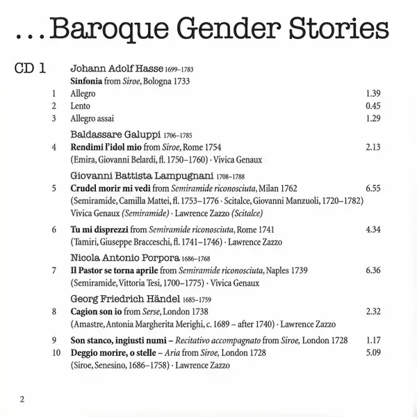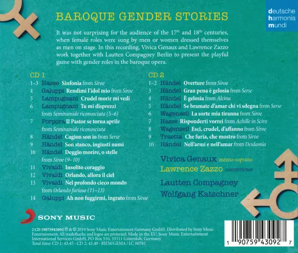 Lautten Compagney: ... Baroque Gender Stories La version sur 2CD en Norme édition. Cette édition particulière a été publiée en L'Europe dans la maison d'édition deutsche harmonia mundi En collaboration avec Sony Music Le 14 juin 2019. Album couvre tous les genres Musique classique et Musique baroque.