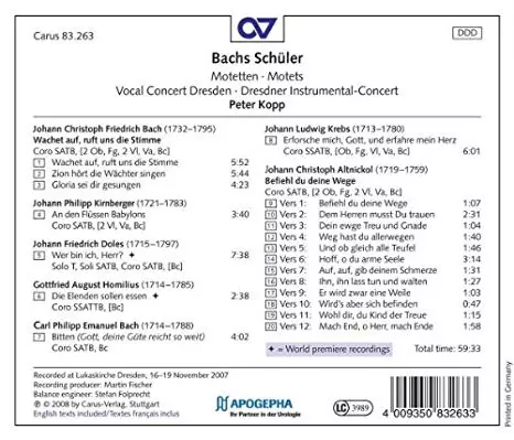 Titre | Bachs Schüler - Motetten • Motets |