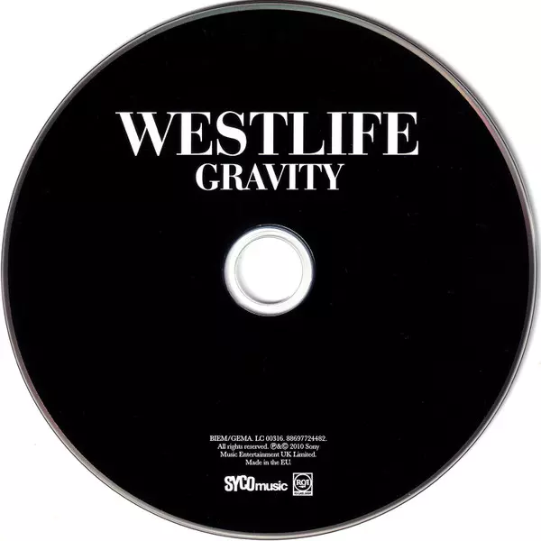 Westlife: Gravity La version sur CD en Norme édition. Cette édition particulière a été publiée en L'Europe dans la maison d'édition Syco Music En collaboration avec RCA Label Group et Sony Music Le 1 juin 2015. Album couvre tous les genres Rock, Pop, Ballade et Pop Rock.