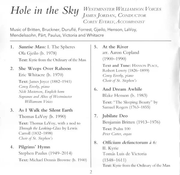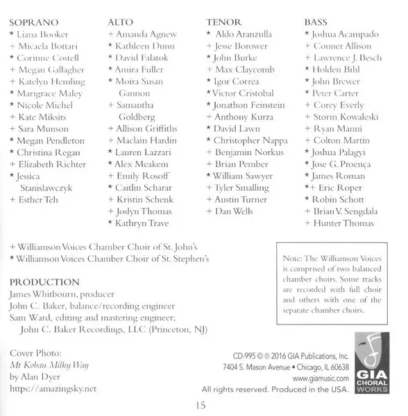 | Artiste | Westminster Williamson Voices | James Jordan |